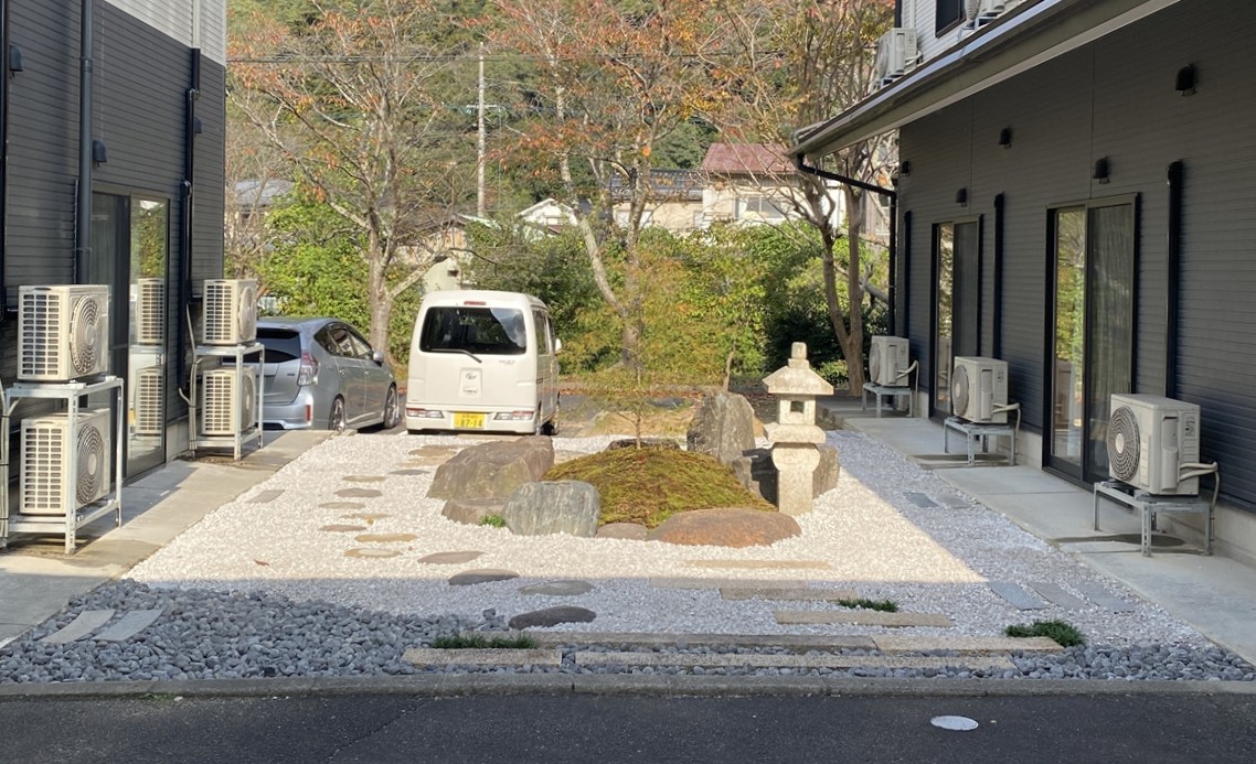 日本庭園 ~ メイン・エントランス編 ~ お知らせ2025/11/82025/11/8 by エルスリー鳥取 住宅型有料老人ホーム『エルスリー鳥取』です。 1番館と2番館正面玄関前(便宜上、メイン・エントランスと言います)に花壇があったのですが、、、、、(正面・グーグルマップより) (裏・グーグルマップより) 正直、伸び放題。お世辞にも手入れされている感がありません。 さて、、、 どうしましょう、、、、、 そうだ、日本庭園にしましょう! 枯山水なら、お手入れも出来るかもしれません! 工事開始。 工程を飛ばしますが、工事完了。 裏側から見てもバランスが取れてます。 以前と比べて各段に良くなりました! 以上、住宅型有料老人ホーム『エルスリー鳥取』でした。 | 一覧 | 前の記事へ »