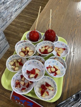 初の試みですが、リンゴ飴。当然ですが、食べやすい大きさにカット。